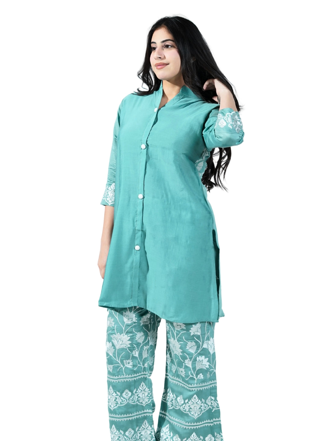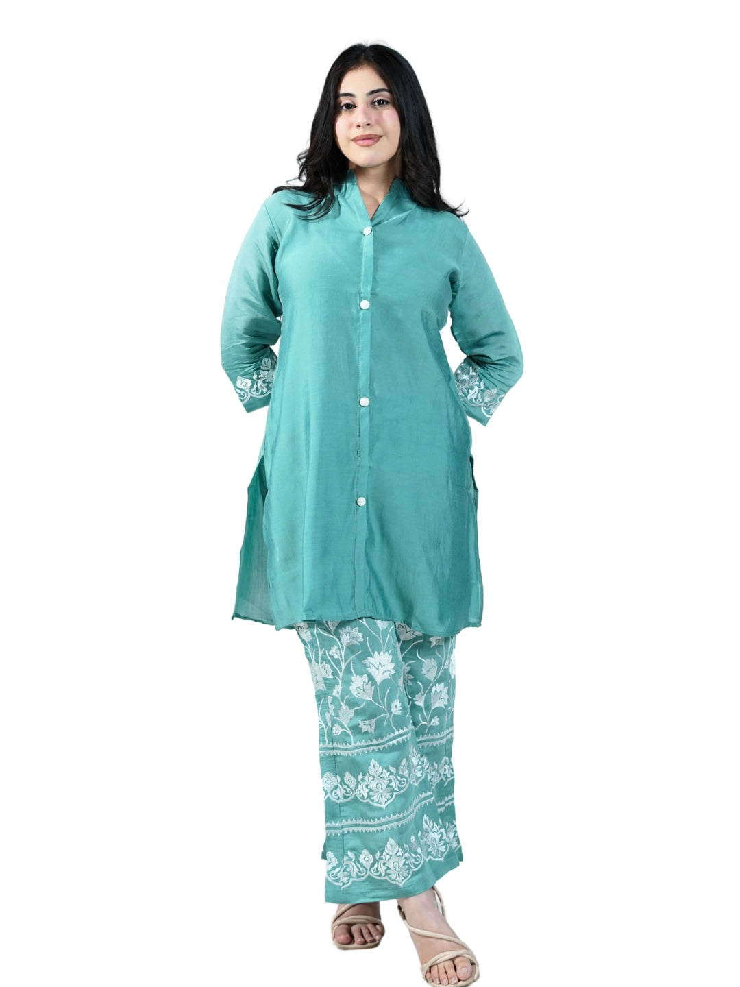 Crafted in lightweight, breathable Chanderi fabric Includes coordinated top and bottom for a chic, put-together look Comfortable fit with a... Read more