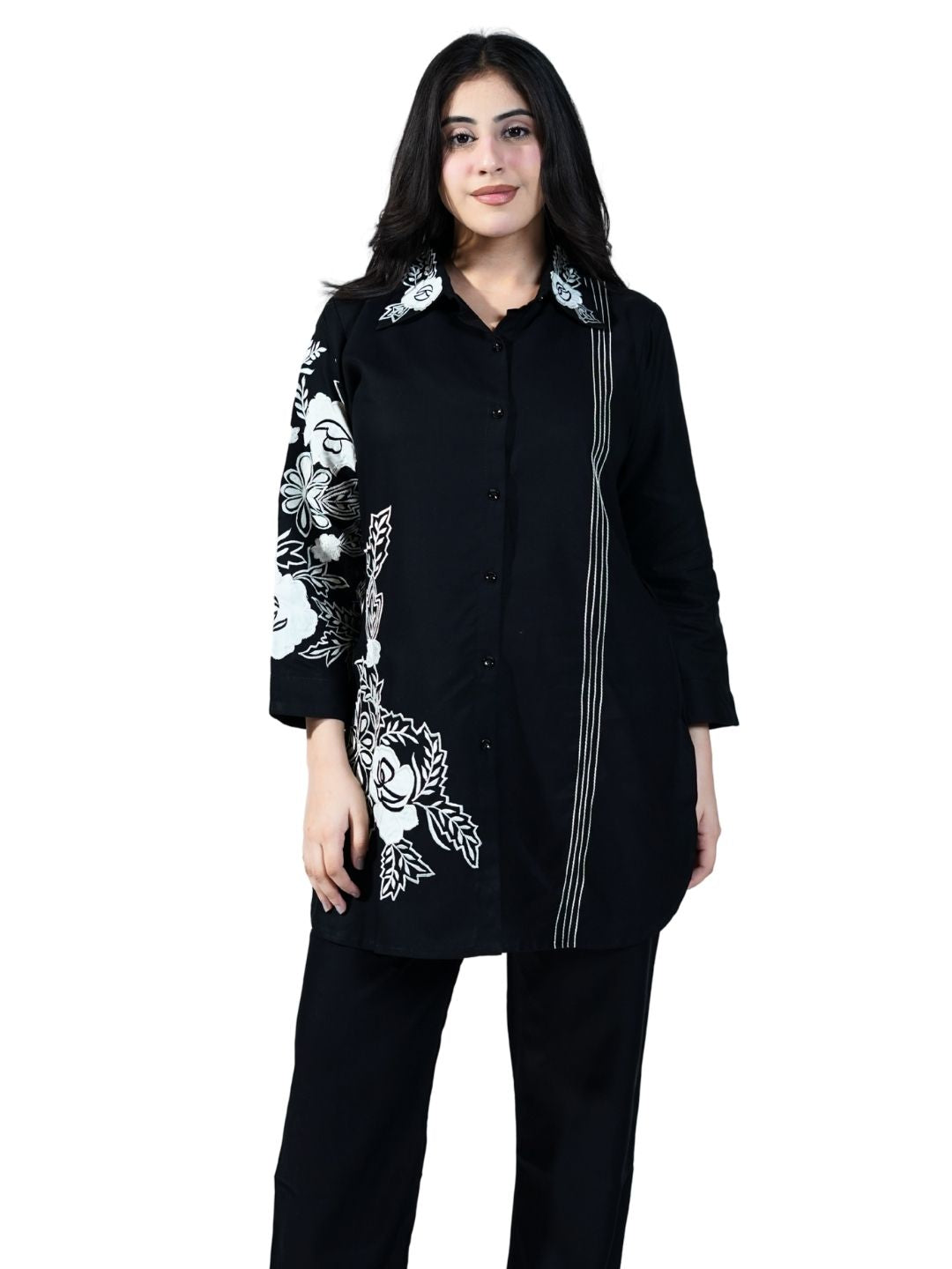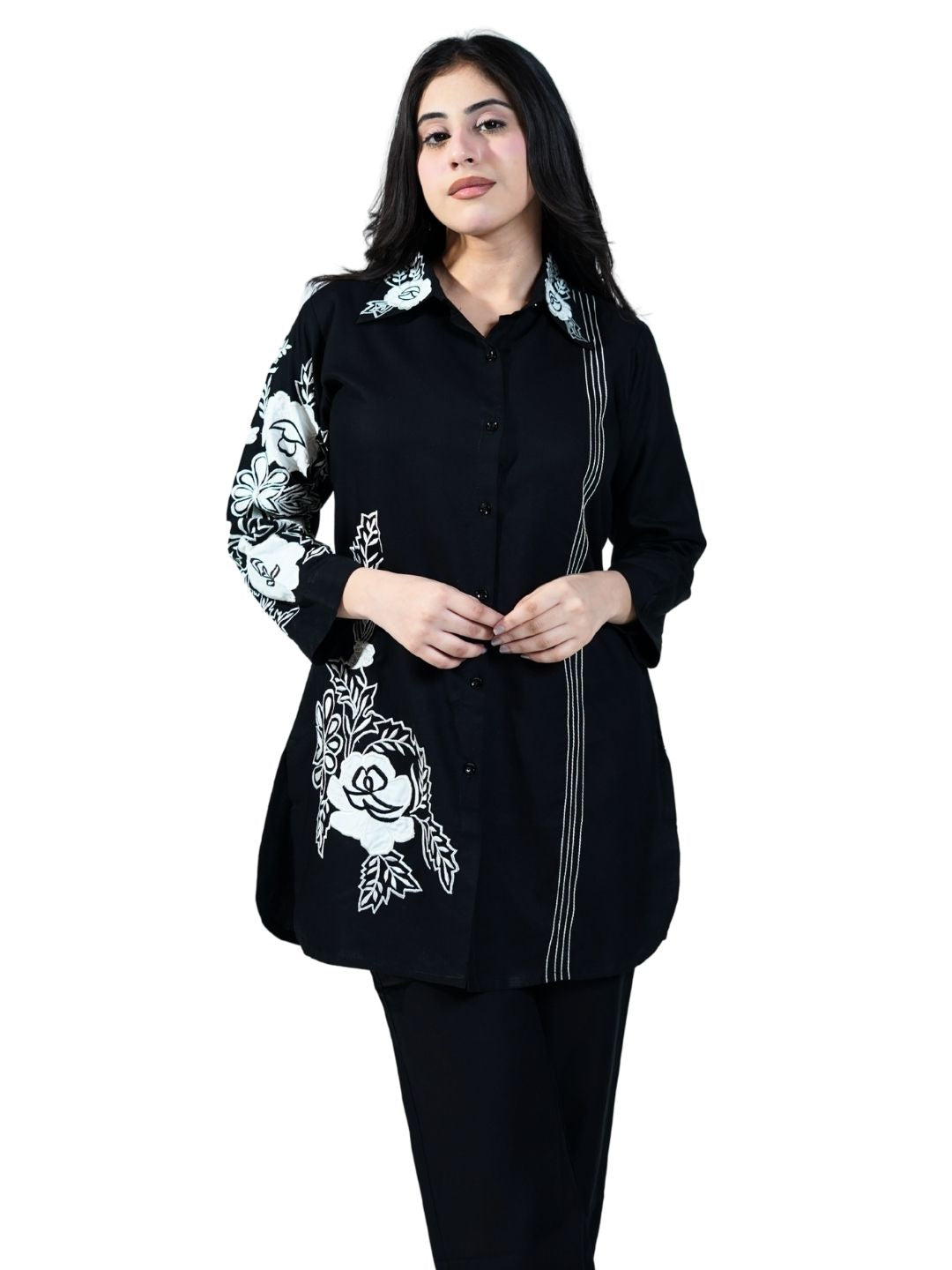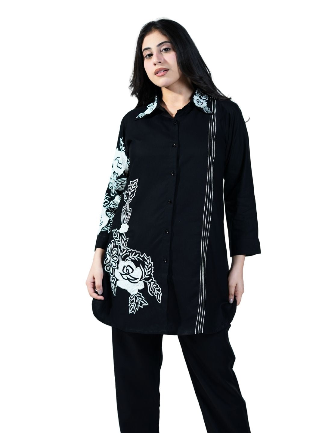 Premium breathable cotton fabric Delicate thread embroidery detailing Coordinated top & bottom set Comfortable fit with tailored finish Ideal for... Read more