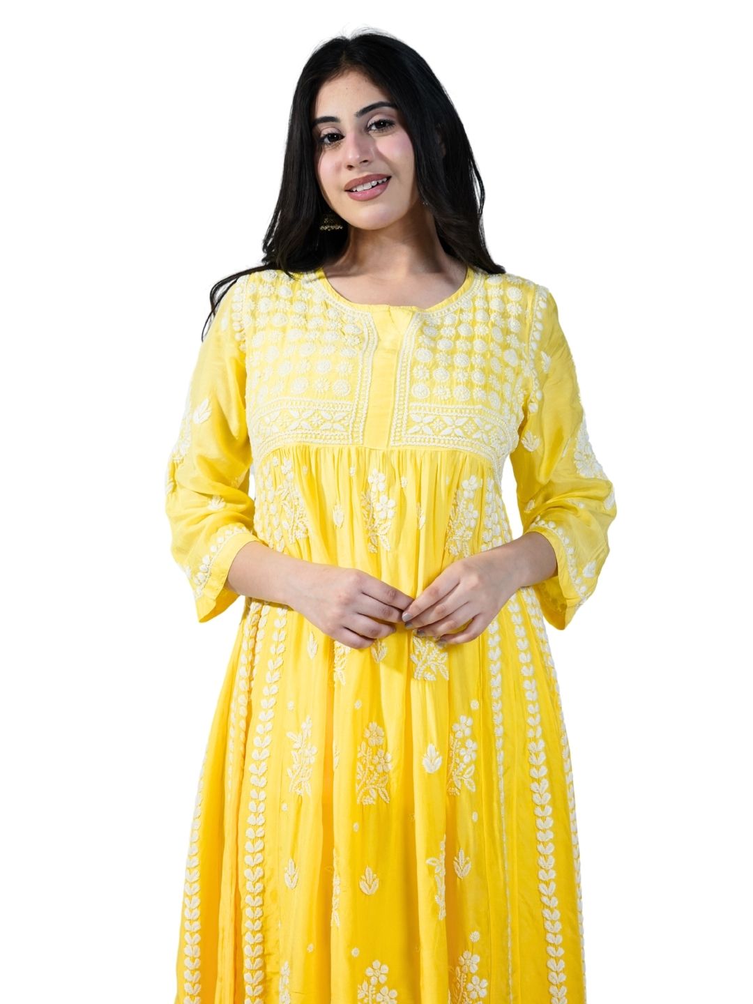 Fabric: Premium Cotton Georgette – soft, breathable & flowy Craftsmanship: Intricate Lucknowi Chikankari embroidery Fit: Comfortable straight fit, ideal for... Read more
