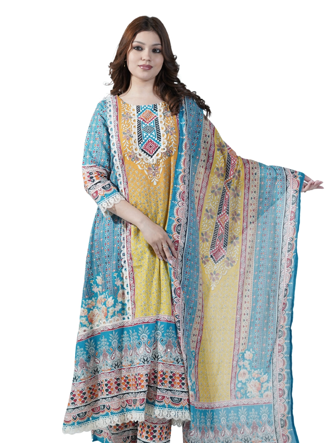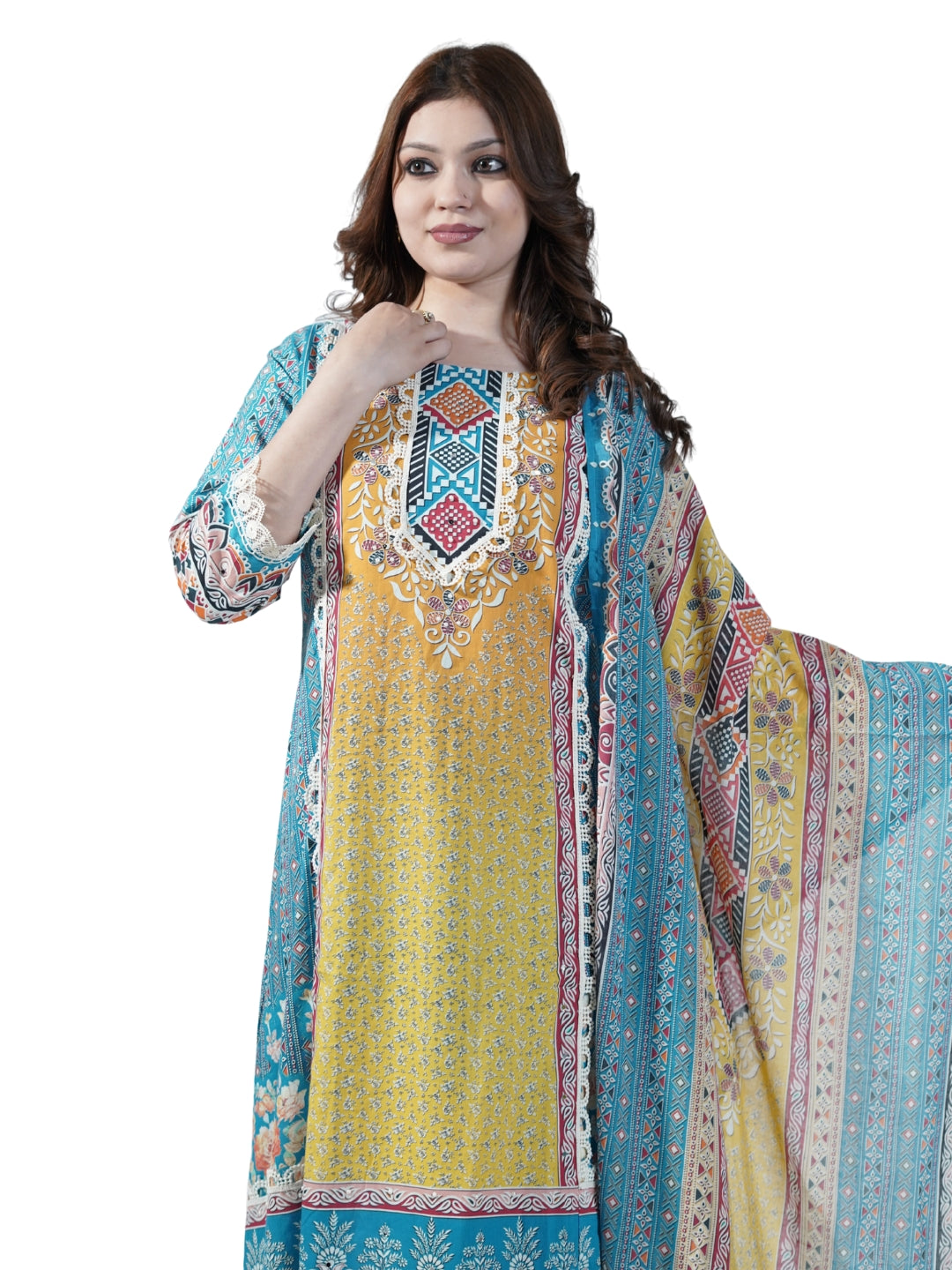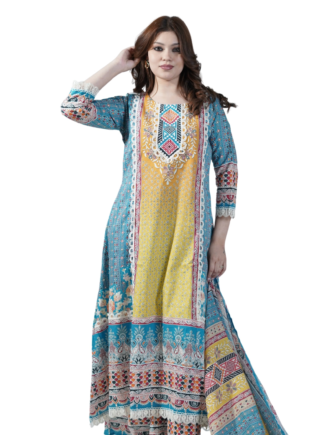 Cotton Neck Lace Work Kurti Set