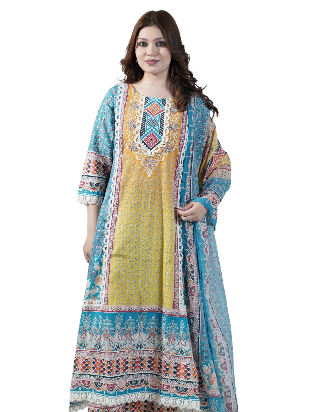 Fabric: Soft and breathable premium cotton Design: Elegant lace detailing on the neckline for a refined finish Style: Straight-fit kurti... Read more
