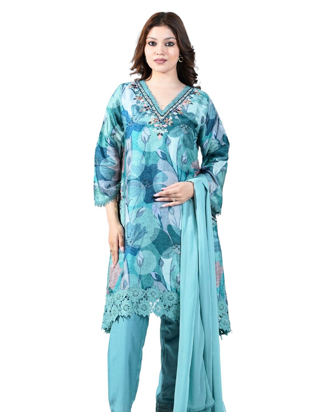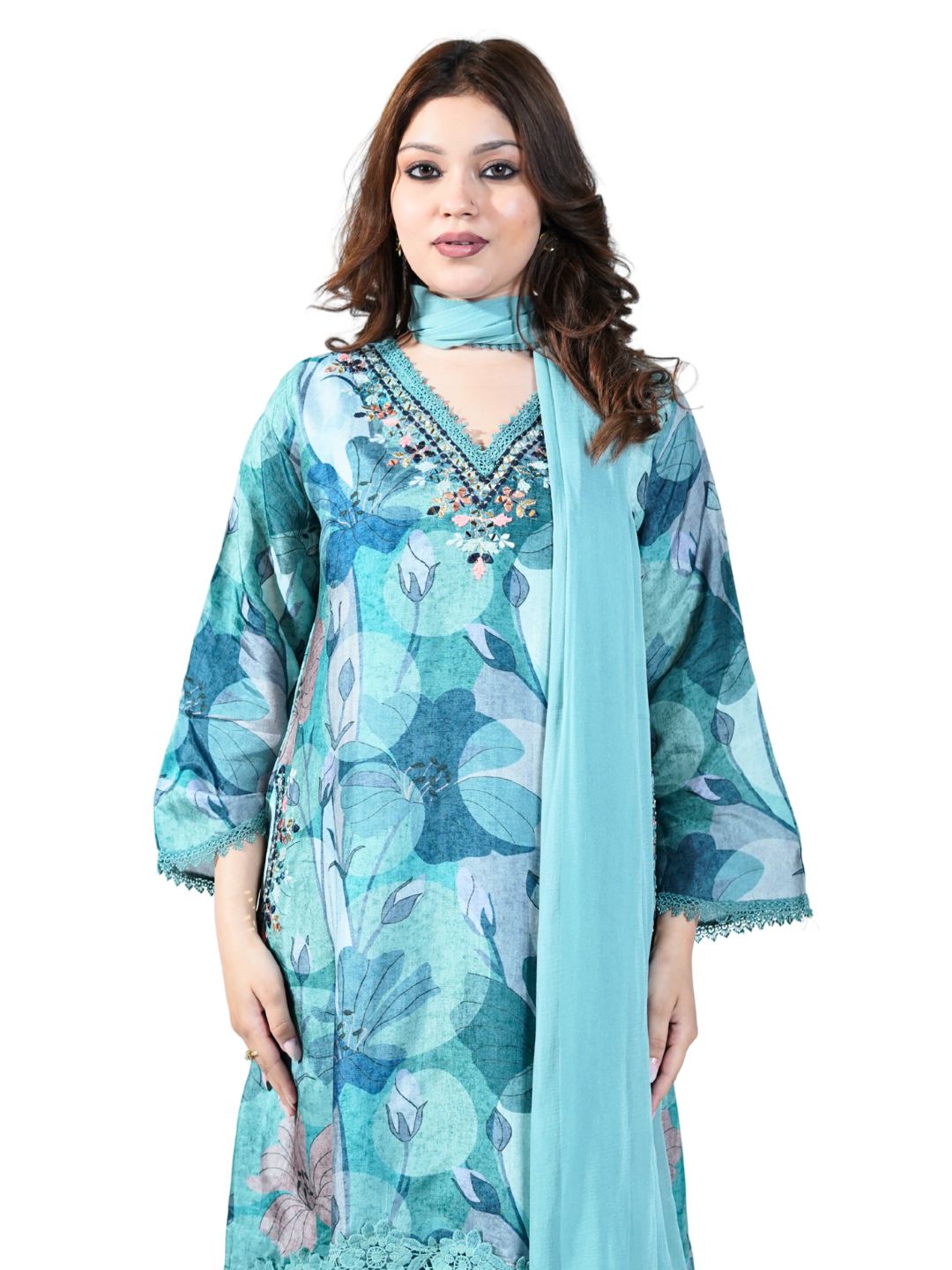 Cotton Print Kurti Set with Neck Work