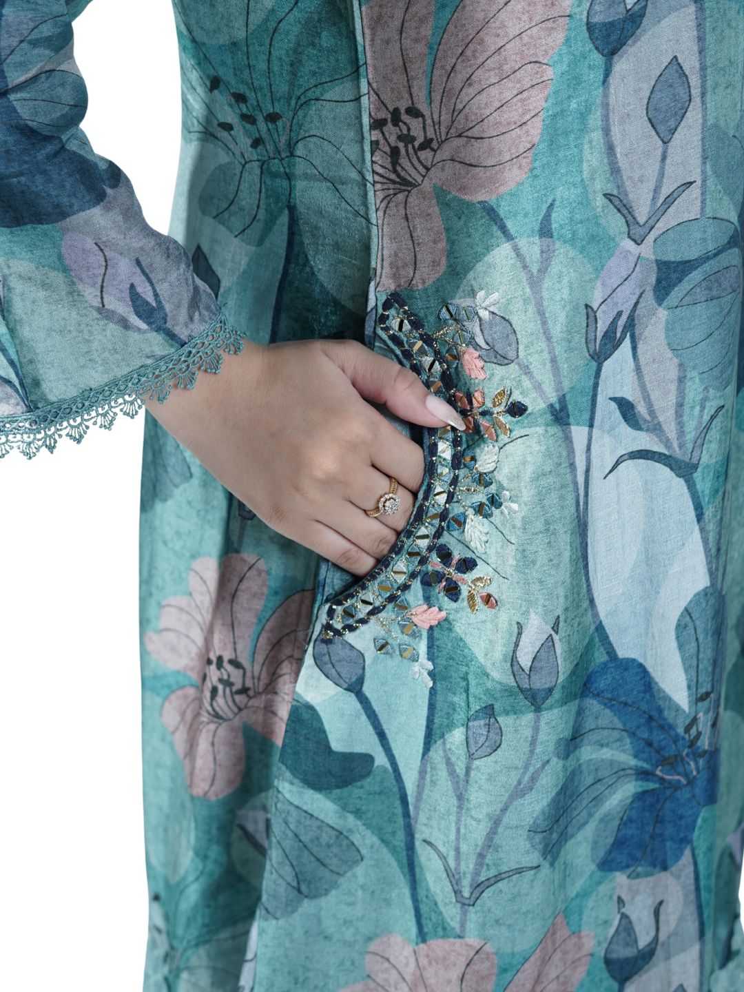 Fabric: 100% soft cotton for breathable comfort Style: All-over printed kurti set Neckline: Beautifully handworked detailing on neck Set Includes:... Read more