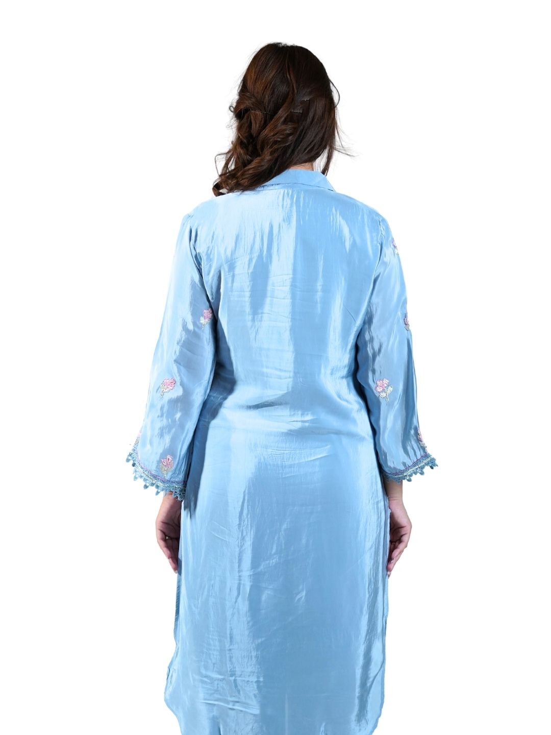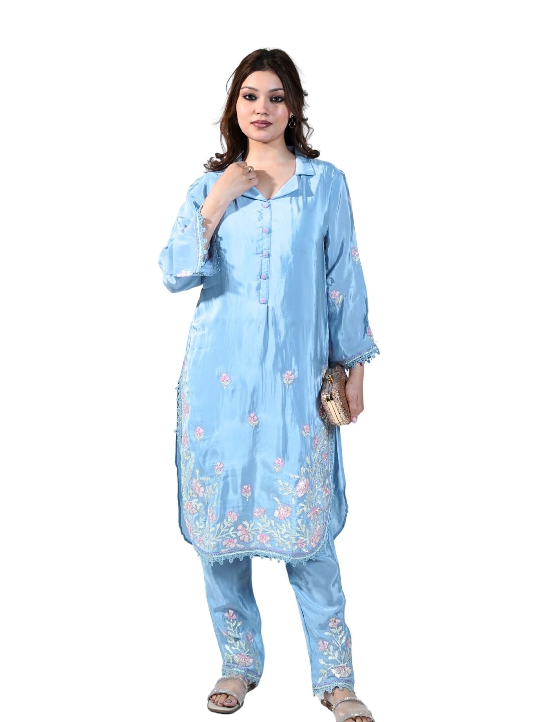 Crafted in soft, breathable crepe fabric Intricate threadwork detailing adds subtle elegance Includes matching top and bottom for a coordinated... Read more
