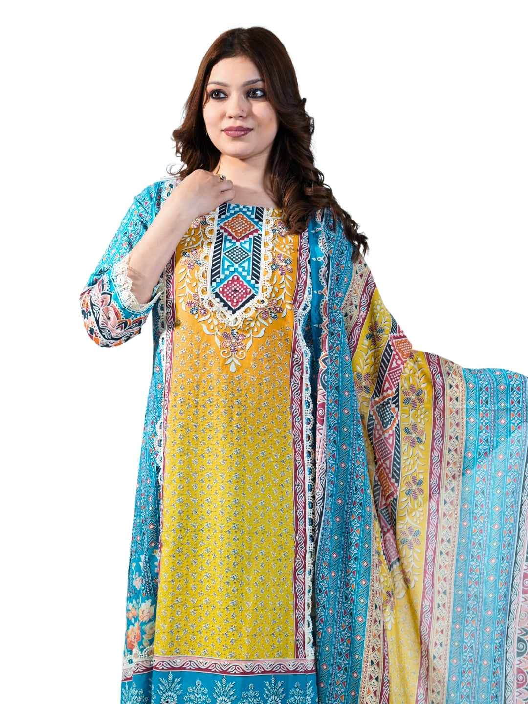 Crafted in lightweight, flowy crepe fabric All-over elegant print for a graceful look Classic Anarkali silhouette with a flattering flare... Read more