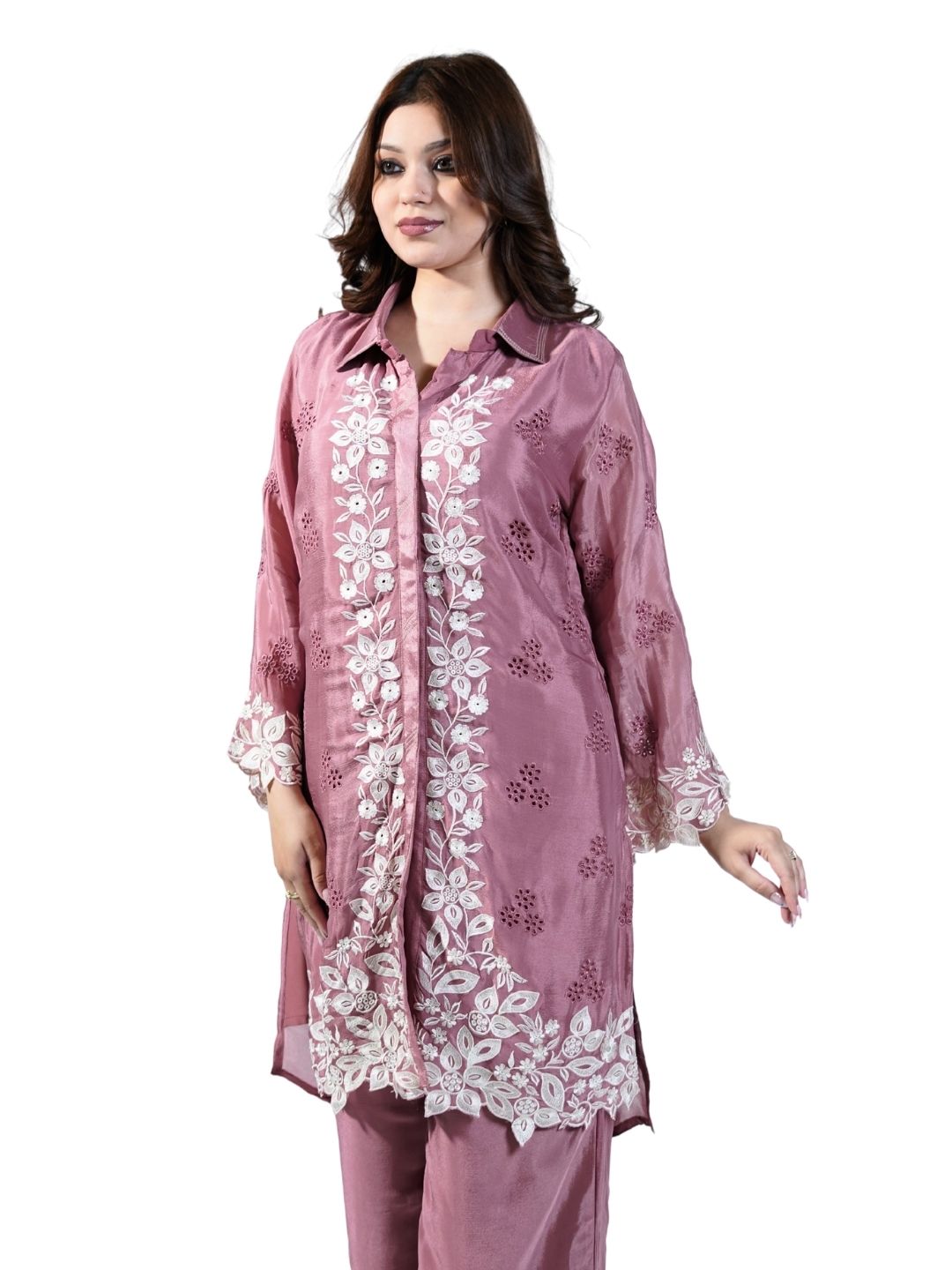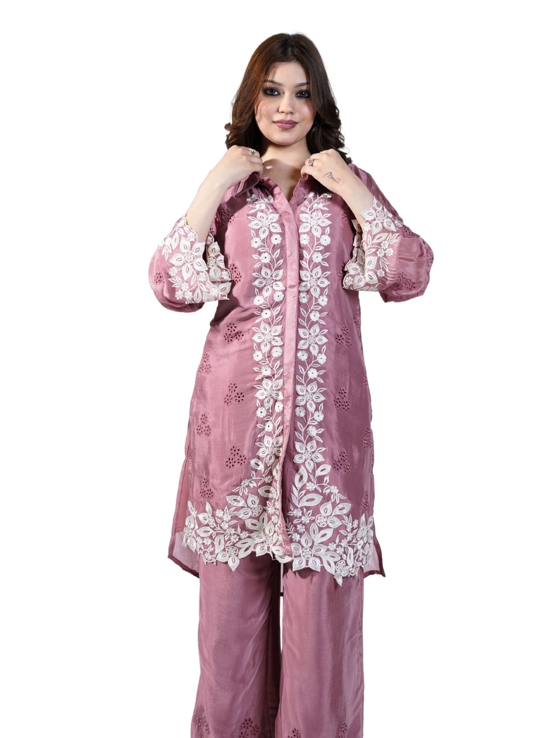 Premium quality crepe fabric Intricate thread embroidery detailing Stylish co-ord set: top & bottom included Comfortable and lightweight fit Ideal... Read more