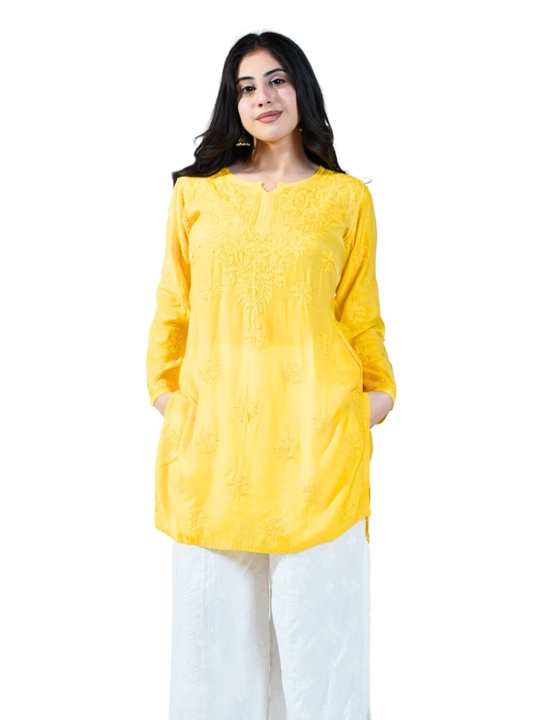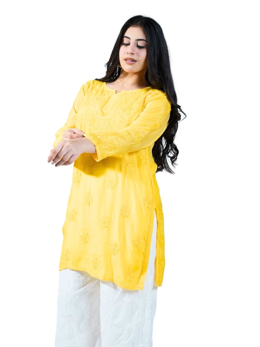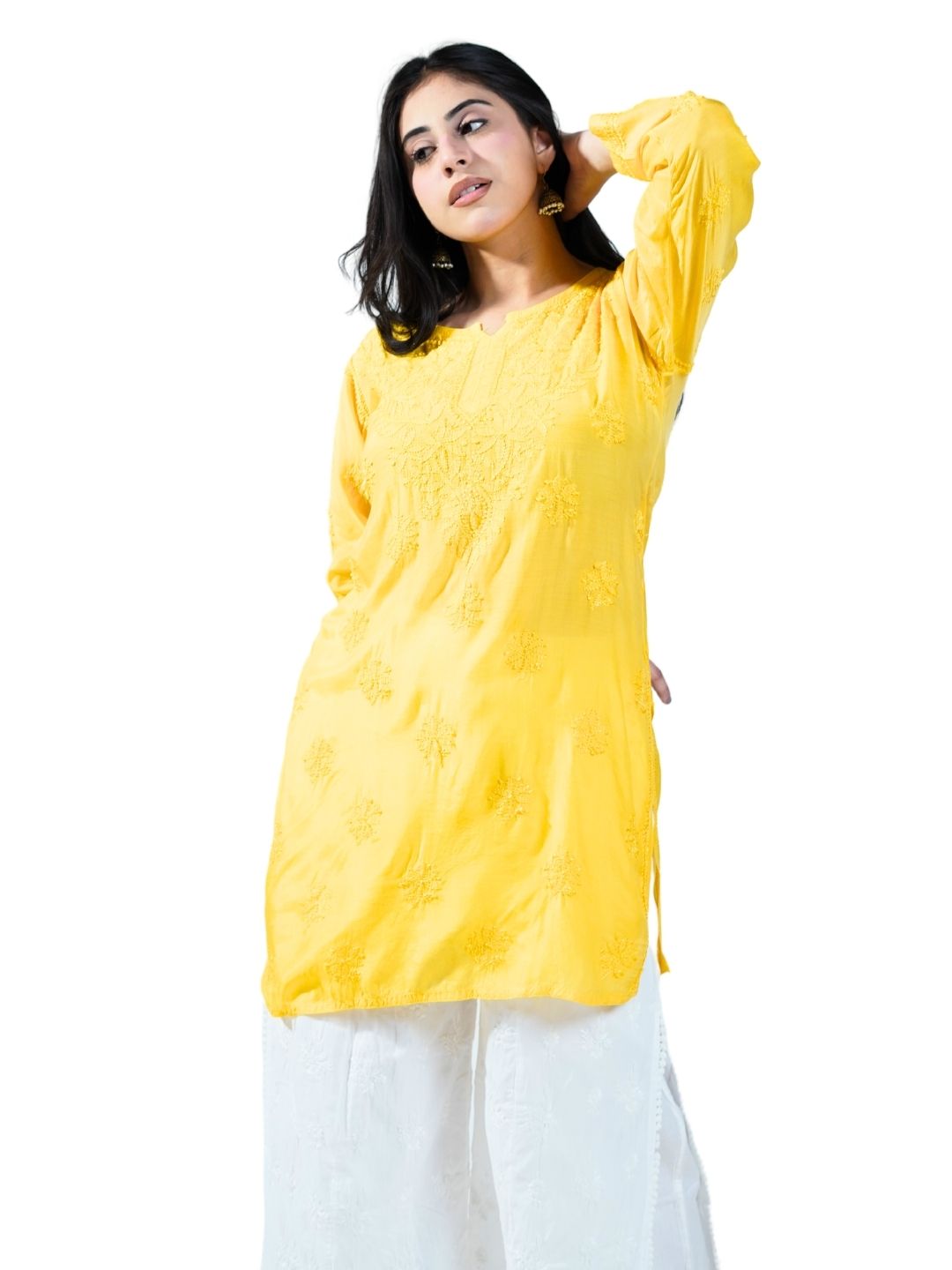 Crafted from lightweight, breathable muslin cotton for all-day comfort Features intricate Lucknowi chikankari embroidery for a timeless ethnic charm Soft... Read more