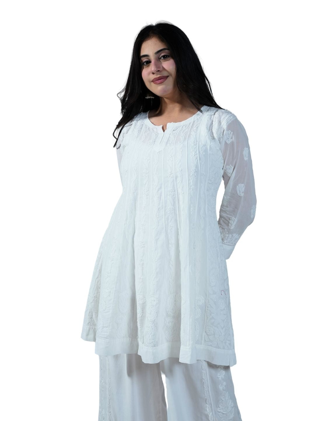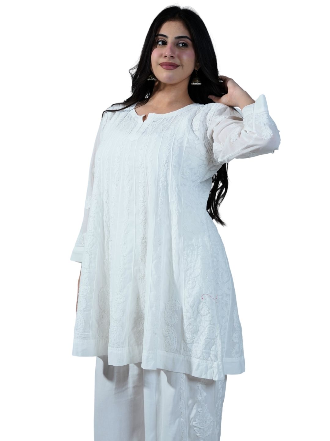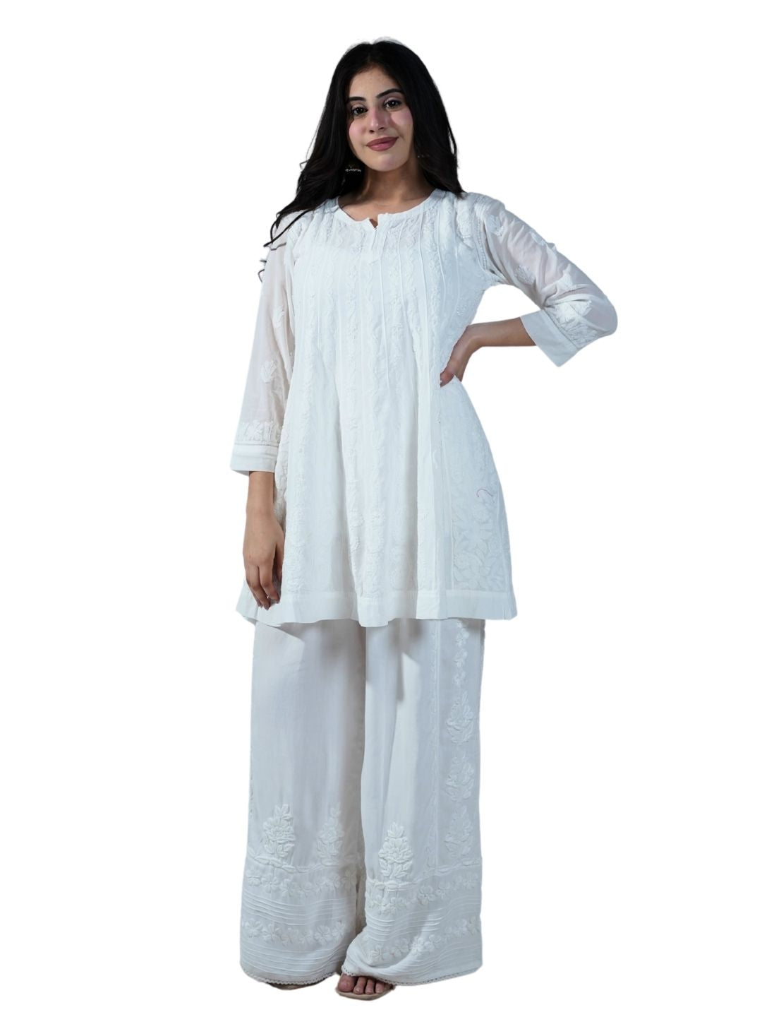Premium geo fabric with intricate Lucknowi embroidery Comfortable Kurti set for festive & casual wear Soft, breathable & skin-friendly texture Stylish... Read more