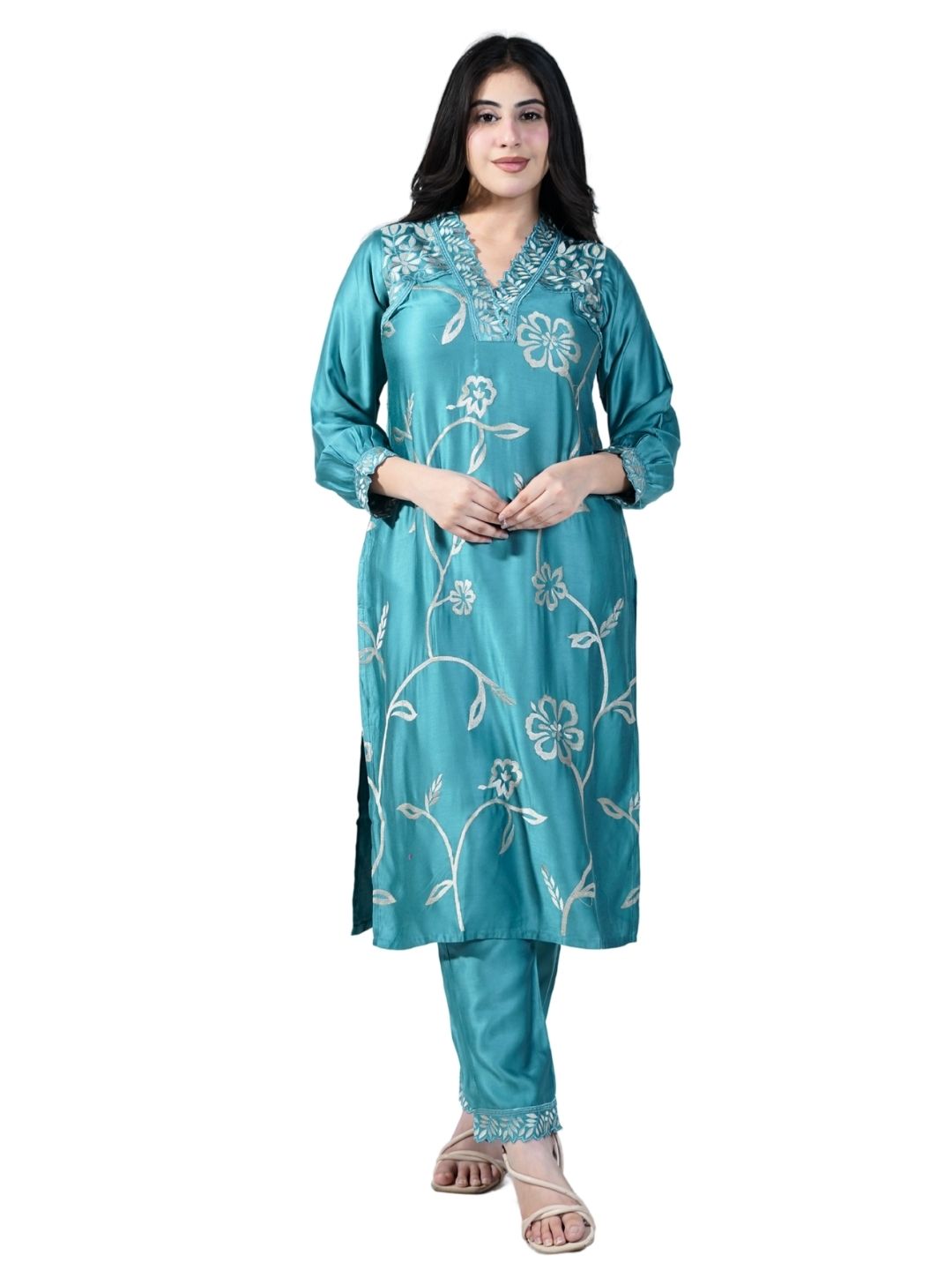Premium muslin cotton fabric for all-day comfort Intricate thread work detailing adds elegance Coordinated top and bottom set for a... Read more