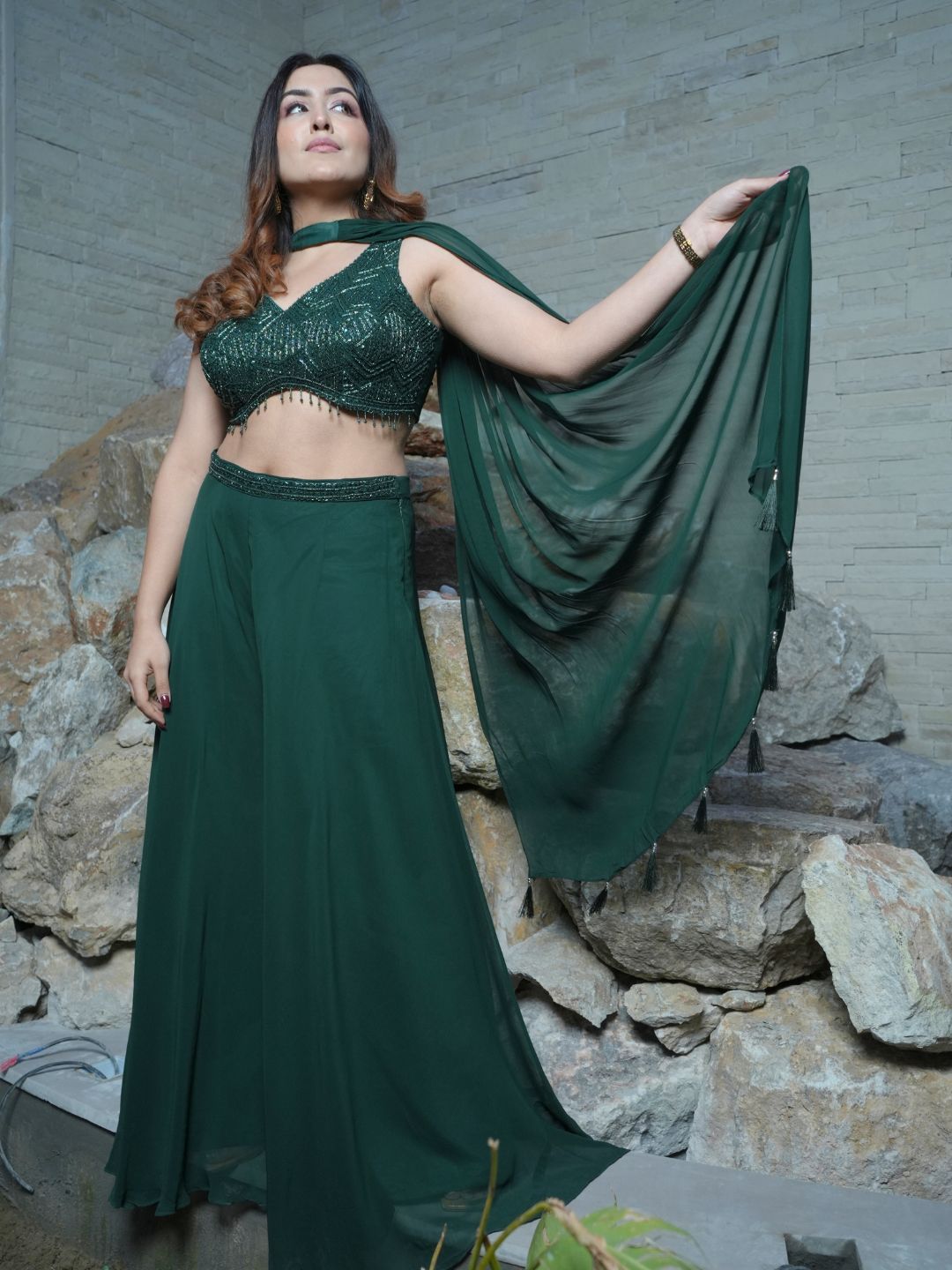Premium pure crepe fabric for a rich, fluid drape Exquisite heavy handwork on the blouse — crafted by skilled artisans... Read more