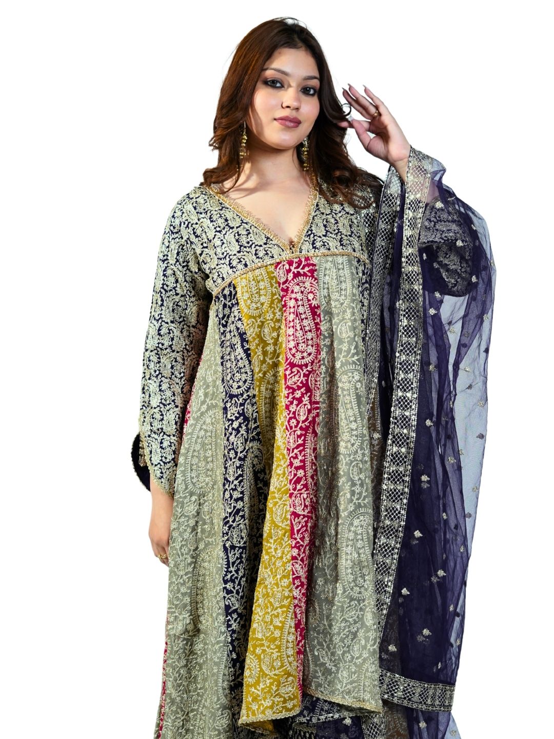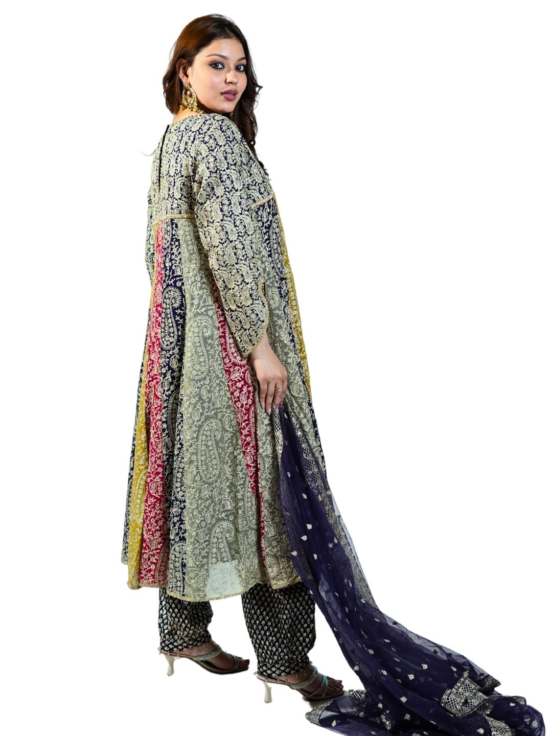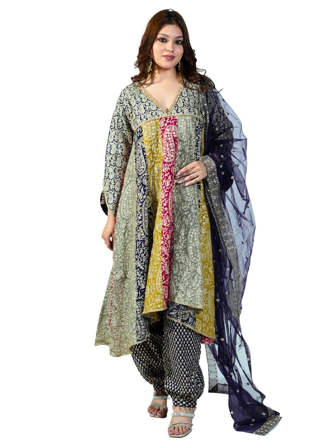 Elegant Papram-style suit, perfect for festive and formal occasions Intricate Ari work detailing adds a touch of timeless craftsmanship Includes... Read more