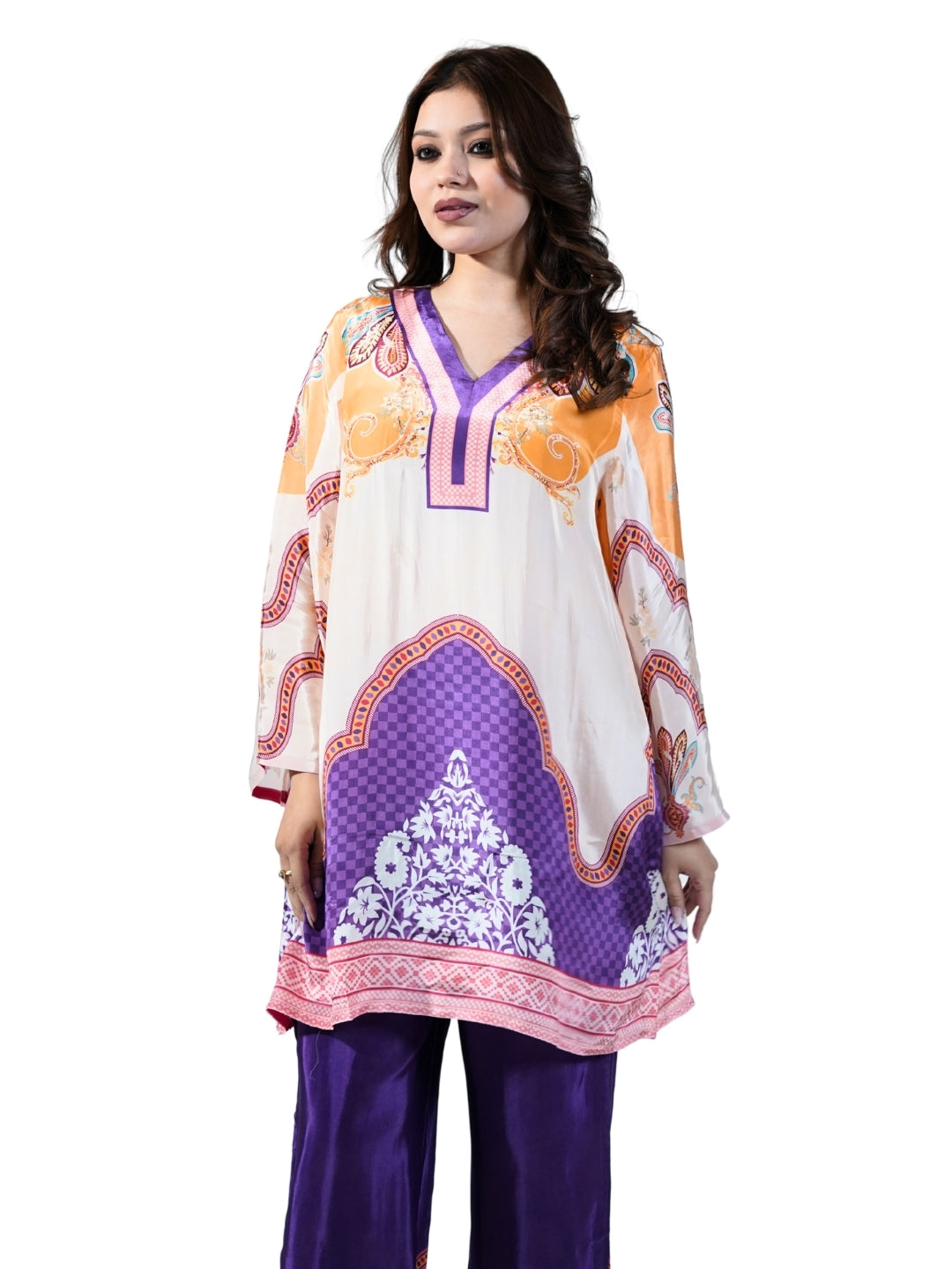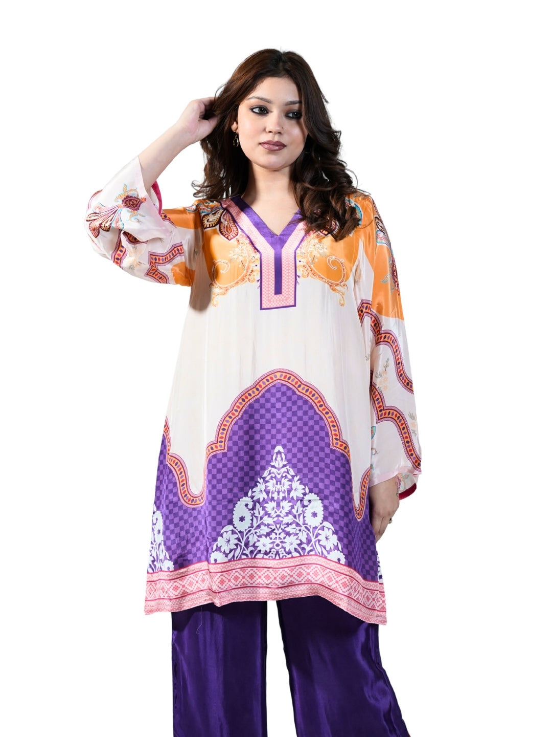 Soft, breathable crepe fabric All-over trendy digital print Coordinated top and bottom set Lightweight & wrinkle-resistant Easy day-to-night transition Relaxed... Read more