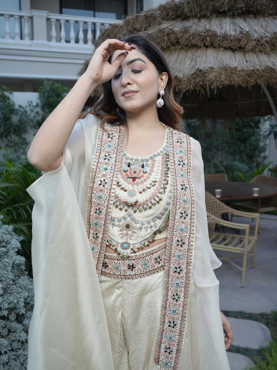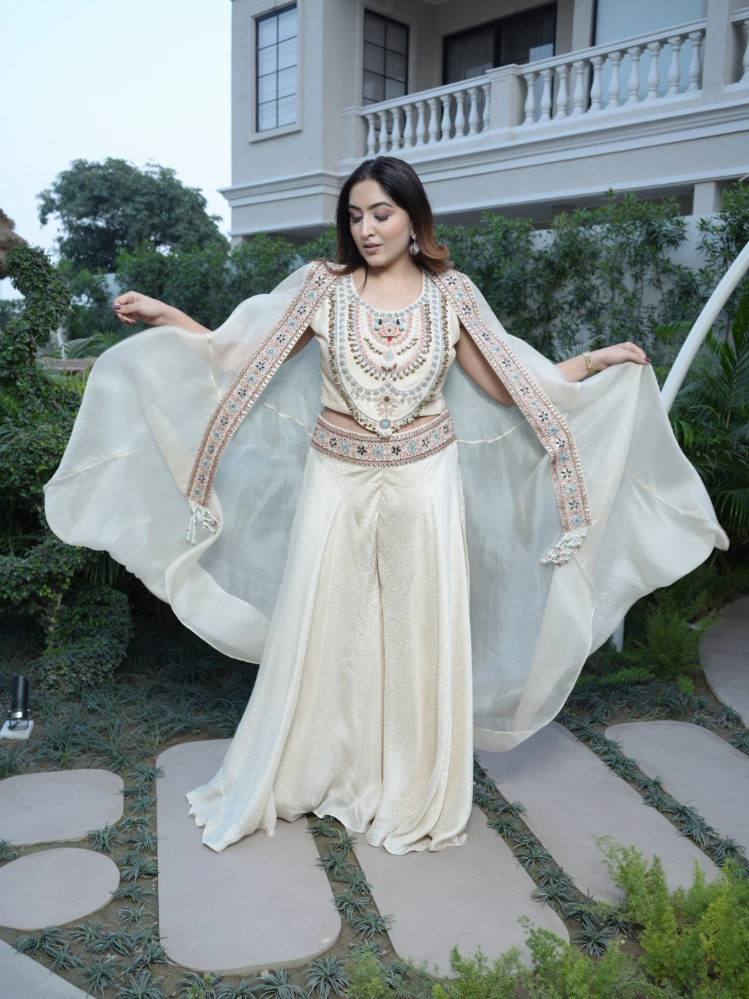 Pure Banarasi Bottom with Organza Shrug