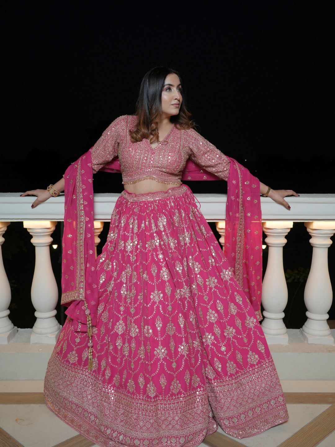 Fabric: Premium Pure Georgette Craftsmanship: Intricately detailed heavy handwork all over Texture: Soft, lightweight, and flowy with a rich drape... Read more