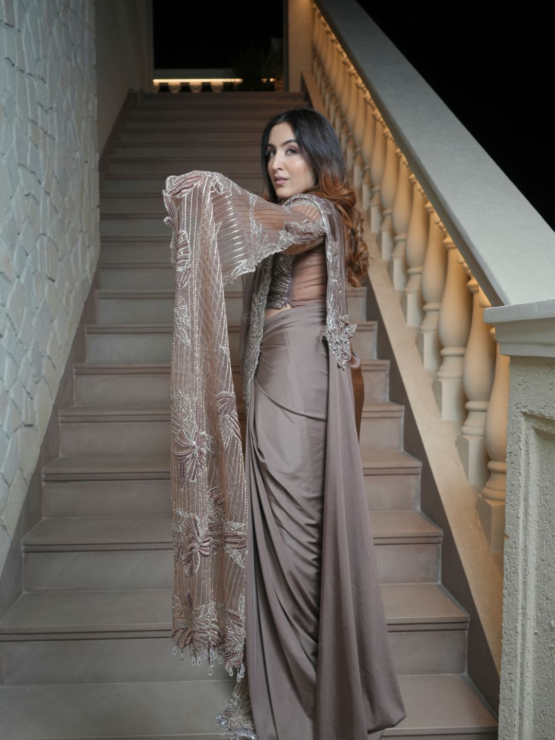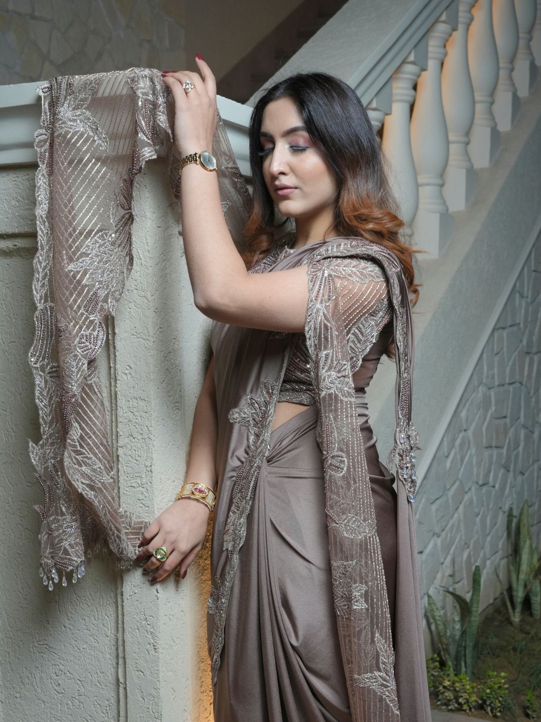 Fabric: Premium pure Lycra for a flattering and comfortable drape Pallu: Imported net pallu for a graceful, lightweight fall Work:... Read more