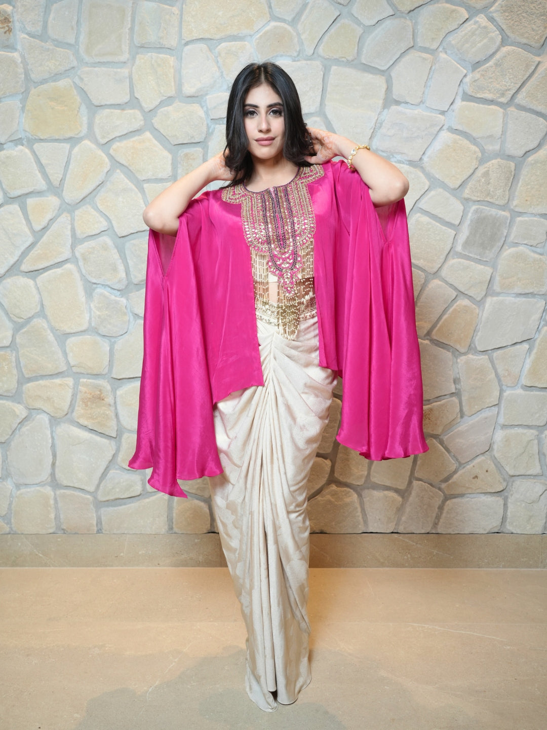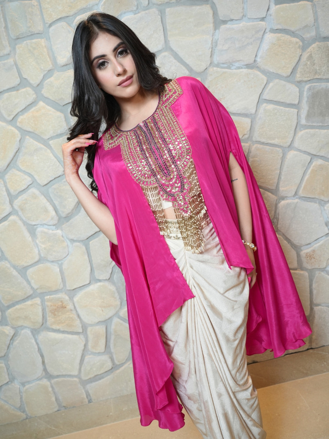 Fabric: Premium pure crepe for a luxurious and smooth feel Blouse: Features intricate heavy handwork, showcasing craftsmanship and elegance Look:... Read more