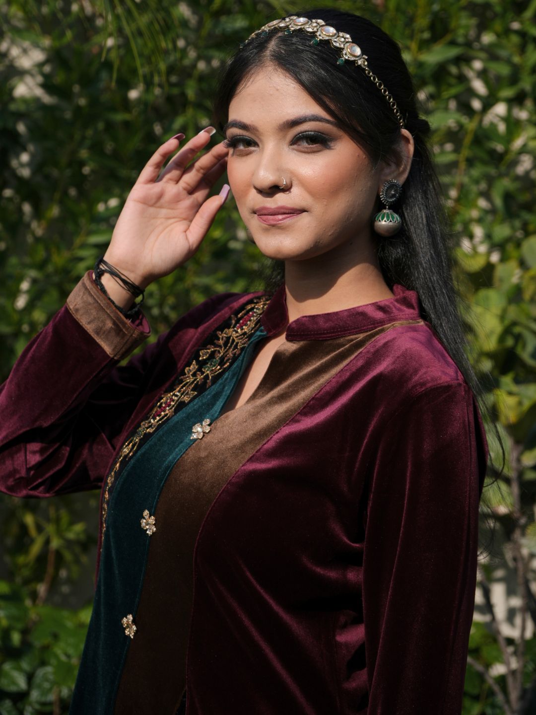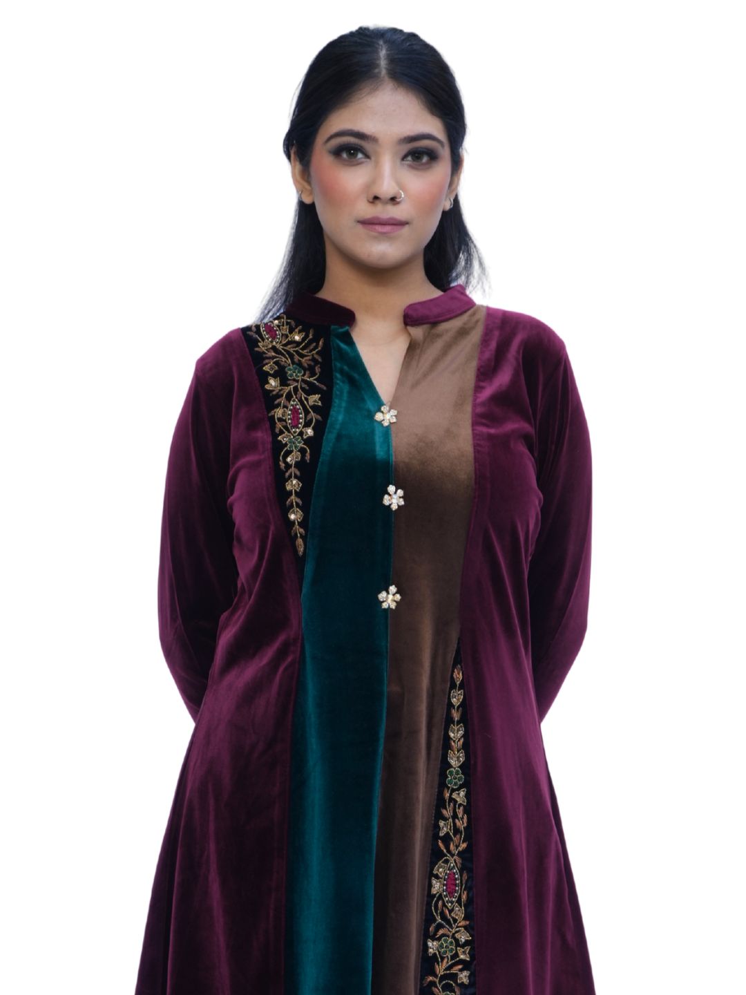 Premium velvet fabric with a rich, luxurious texture Intricate thread embroidery detailing for added elegance Expertly finished with handcrafted elements... Read more