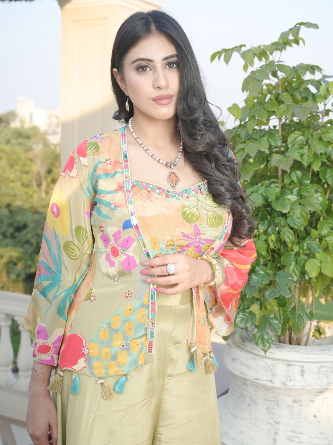 Fabric: Premium Pure Crepe – soft, flowy, and breathable Design: Elegant digital print for a modern appeal Work: Enhanced with... Read more